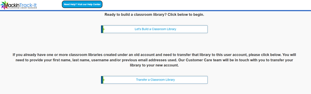 - Once you arrive at the screen pictured below, please select Transfer a Classroom Library and submit a help ticket with the information below: